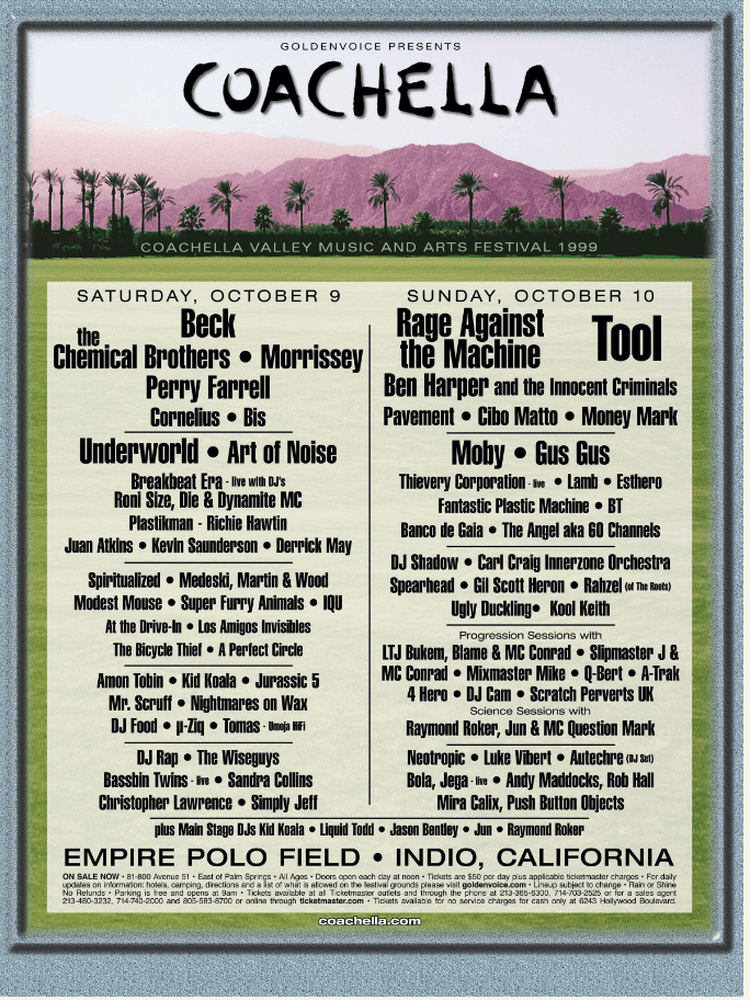Today, we will be talking about one of the most well-known music festivals in the U.S., Coachella. Making its debut in October 1999 as a small alternative rock festival, Coachella was inspired by a 1993 Pearl Jam concert that was held at the Empire Polo Club in Indio, California.